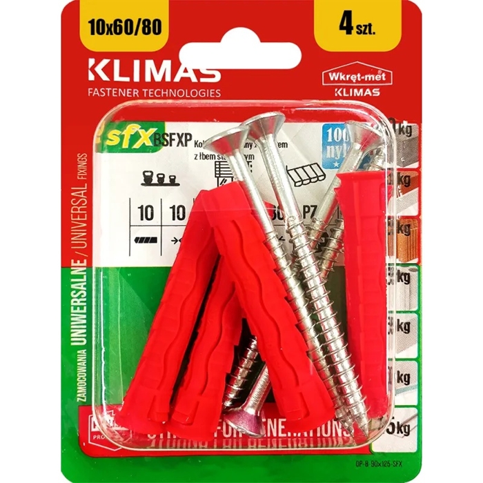 Kołek SFXP składa się z koszulki wykonanej z poliamidu oraz ze stalowego wkręta hartowanego z łbem stożkowym pokrytego warstwą ochronną cynku.